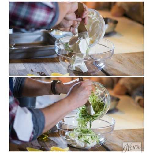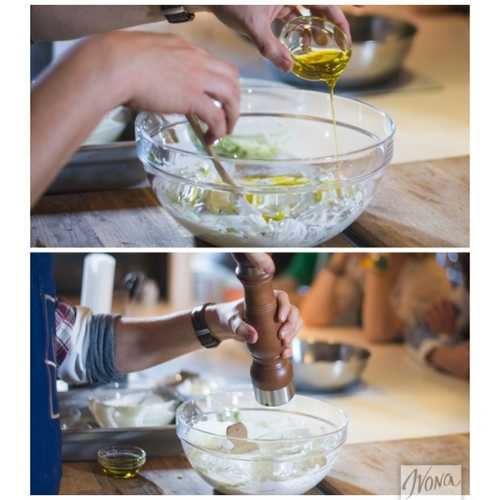 1. Возьмите йогурт и смешайте его со свежим огурцом, натертым на терке.