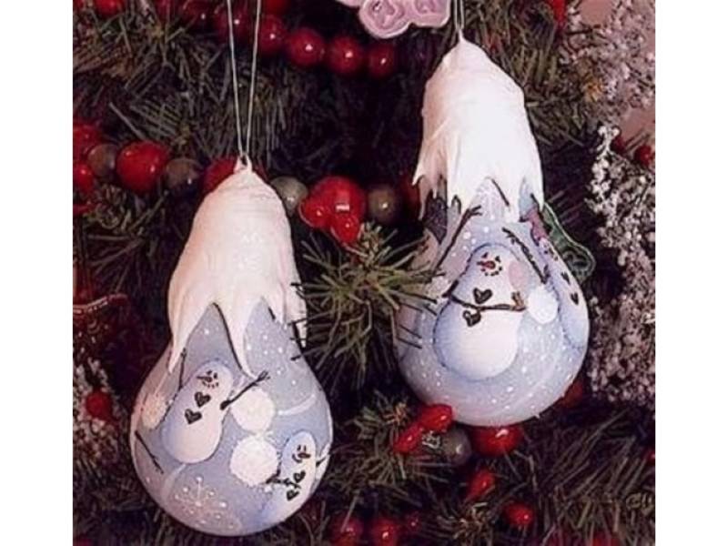 Форма обычной лампы накаливания схожа с формой классической елочной игрушки. Этот факт не дает некоторым людям выкидывать перегоревшие лампочки. Их расписывают своими руками в винтажном стиле, под хохлому и финифть. Им рисуют мордочки, приклеивают бороду, делают из них новогодних снеговиков на елку. Чтобы скрыть металлическую часть лампочки, для неё можно сделать колпачки и шляпки.
