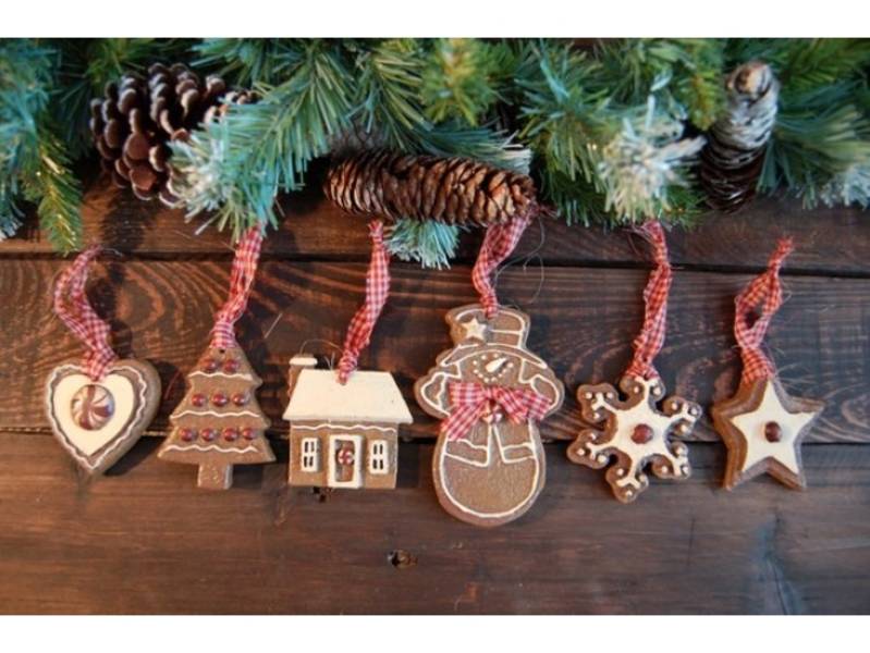 А еще эти коричневые фигурки на елку можно сшить из ткани, как мягкие игрушки. Расписать их лучше всё тем же акрилом или контуром для батика, совсем как глазурью.