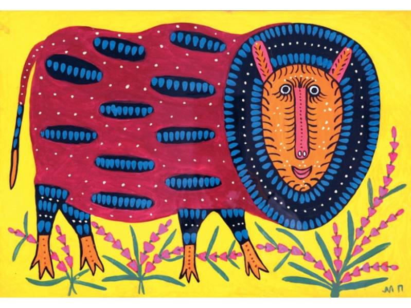 2. В детстве Мария пережила страшную болезнь - полиомиелит. Из-за этого взрослой она вынуждена была передвигаться на костылях или с палочкой. Хотя, как бы цинично это не звучало, сильная физическая боль вызвала уникальную творческую манеру художницы: яркие фантазийные сюжеты всегда несут в себе нотки тоски и борьбы. Поэтому наивность ее работ имеет философское послевкусие.