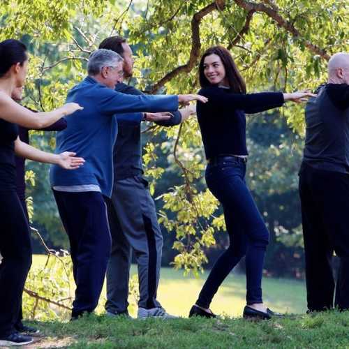 Смотреть онлайн фото Энн Хэтэуэй и Роберта Де Ниро на съемках нового фильма Стажер: