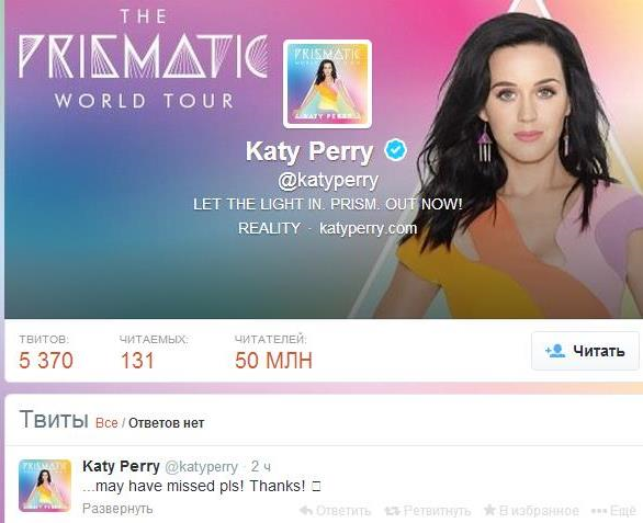 Кэти Перри стала первым микроблогером с 50 млн подписчиков
