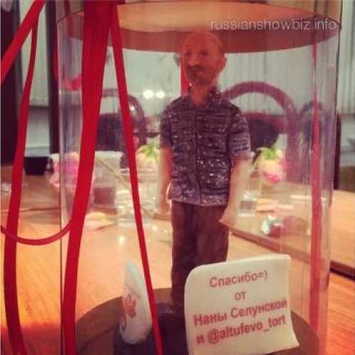 Гоша Куценко получил приятный сюрприз от своих друзей из российской кондитерской «Алтуфьево». Кондитеры изваяли Гошу из шоколада.