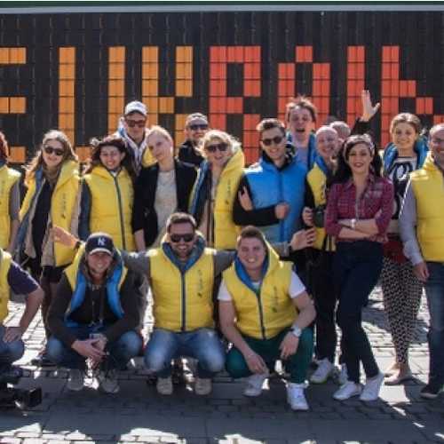 Так, на огромном интерактивном экране HappyWall, работа с которым напоминает процесс обирания пазла из букв, Мария Яремчук и ее команда сложили надпись: «Мы гордимся, что мы украинцы»