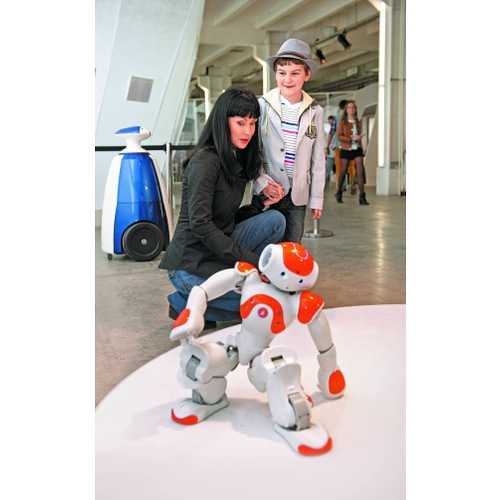 Зато остальные устройства были оценены весьма благосклонно: и танцор НАО, который выделывал замысловатые коленца в стиле брейк-данс, но не справлялся с амплитудой и валился на спину («Не волнуйтесь, он сейчас полежит, отдохнет и сам встанет», – объясняли экскурсоводы гостям, норовящим поставить робота на ноги).