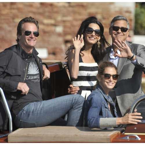 Как сообщает Us Weekly со ссылкой на своих наблюдателей, квартет сел в катер в нижней части Венеции и отправился на прогулку по знаменитым каналам. Для романтического предсвадебного катания жених предпочел идеально сидящий светло-серый костюм, Амаль чудесно выглядела в сарафане с крупными черными и белыми полосами. Синди и Рэнди уступили все внимание молодоженам и выбрали скромные джинсовые луки.