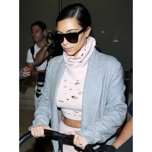 Скандальная телезвезда Ким Кардашьян, видимо, слишком увлеклась погоней за трендами и перещеголяла сама себя. Знаменитая красотка была замечена папарацци в аэропорту Лос-Анджелеса в светло-розовом костюме с укороченным топом.