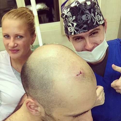 Российский танцор Евгений Папунаишвили разместил в своем фотоблоге снимок, на котором запечатлена его рана на голове.
