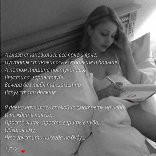 Впервые Тина Кароль решилась опубликовать свои сочинения в блоге. Певица сделала некую открытку со стихотворением, на которой она запечатлена в момент написания лирических строк в своей постели.