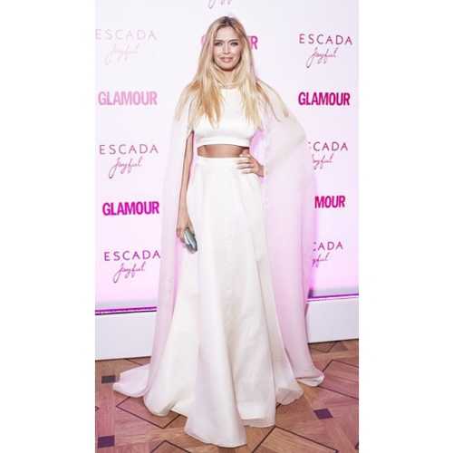 А вот фото с вручения премии Женщина года выложила в соцсеть спустя несколько дней. Вера Брежнева для гламурного вечера выбрала очень нежный наряд, подобный сказочной фее: белоснежный топ с пышной юбкой в пол и парящую шаль нежно-розового цвета.