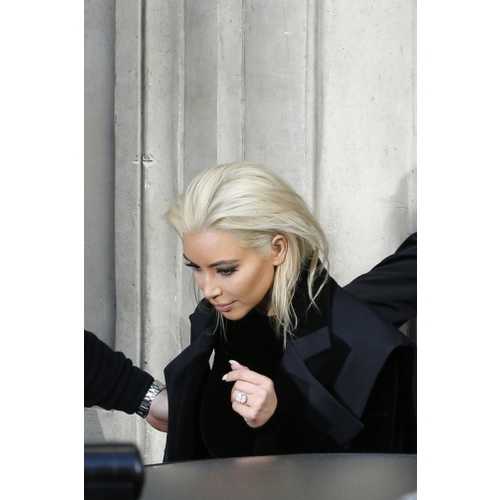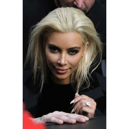 34-летняя актриса Ким Кардашьян прилетела в Париж (Франция) на Неделю моды в новом образе. Несколько дней назад Ким Кардашьян сделала себе стрижку, обрезав свои длинные волосы, а теперь решила вовсе сменить свой имидж и перекрасилась в блондинку.