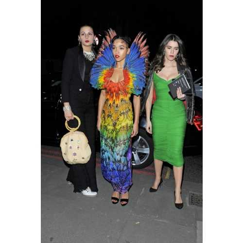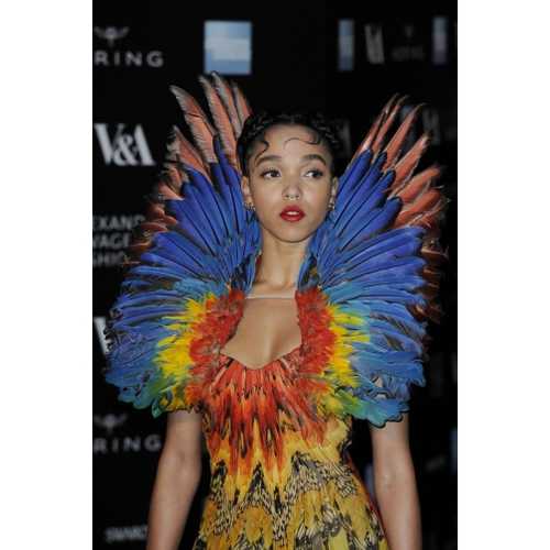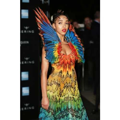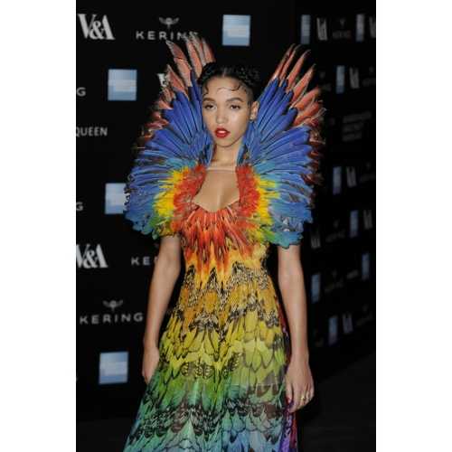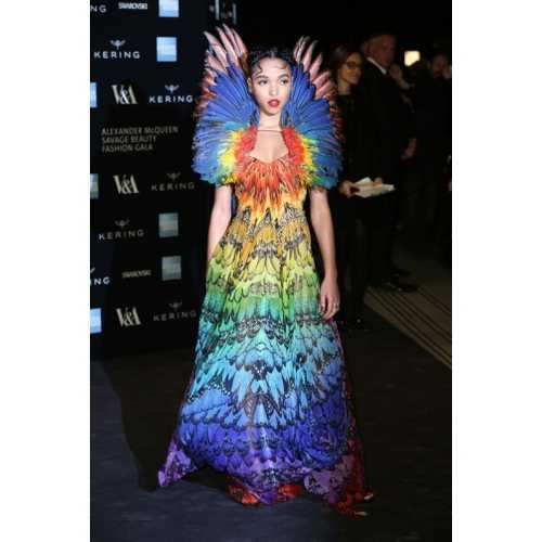 Невеста Роберта Паттинсона, певица Талия Барнетт, выступающая под сценическим псевдонимом FKA Twigs, устроила яркую провокацию. Девушка пришла на гала-ужин, посвященный памяти британского дизайнера Александра Макуина, в кричащем яркими красками наряде.