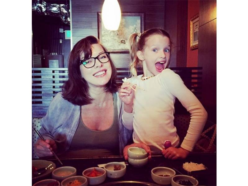 «Наслаждаемся последней неделей втроем до того, как малышка появится на свет. Эту фотографию сделал мой муж в корейском ресторане, куда мы ходили всей семьей», – подписала Йовович фото, на котором она с дочерью Эвер Габо лакомятся едой в ресторане.