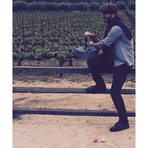 На своей странице в Facebook футболист Дэвид Бекхэм опубликовал снимок, на котором он сидит на заборе с пасхальной корзиной в руках: