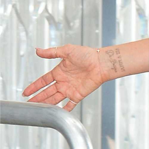На новых фотографиях Виктории Бекхэм, сделанных во время визита дизайнера в Майами, даже невооруженным глазом видно, что татуировки на ее запястье стали значительно светлее и уже не так бросаются в глаза.