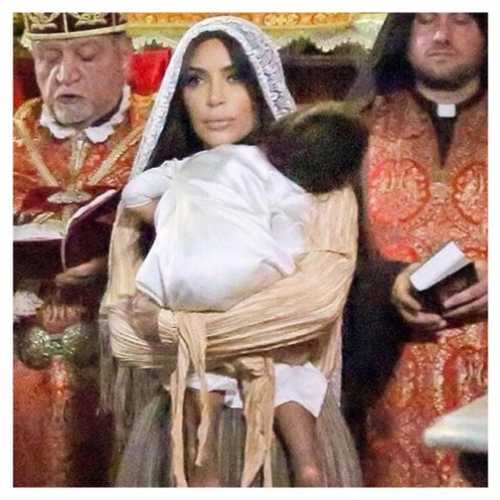 Актриса Ким Кардашьян и ее супруг, рэпер Канье Уэст крестили свою дочь Норт еще в апреле, однако поделиться фотографиями дива решила лишь сейчас.