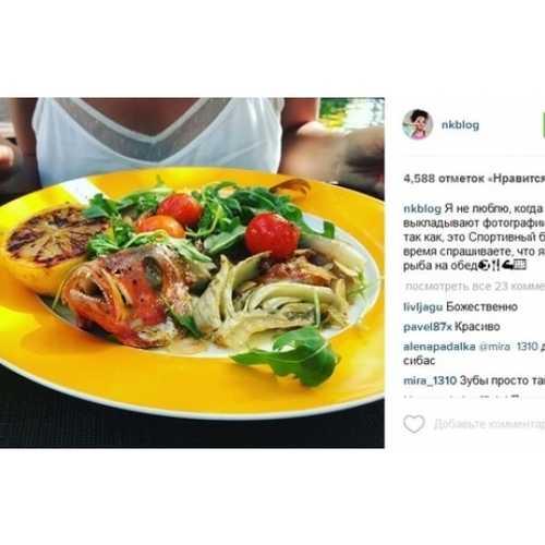 "Я не люблю, когда выкладывают фотографии с едой. Но, так как это спортивный блог и вы все время спрашиваете, что я ем, вот вам рыба на обед!" - написала в соцсети Настя Каменских.