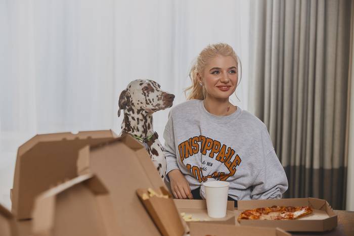«Цей собака став талісманом зйомок — непередбачуваним, але вільним, як і героїня пісні», — жартує артистка.