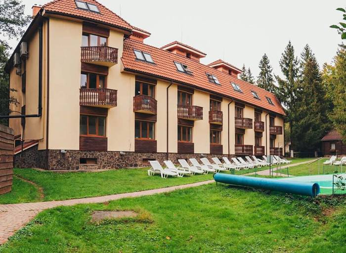 Якщо вам до душі відпочинок у високогірній місцевості, сміливо вирушайте до санаторію «Карпатія» на березі річки Тиса, поблизу букового лісу. Лазня та басейн з теплою мінеральною водою – запорука вашого, дійсно казкового, відпочинку.