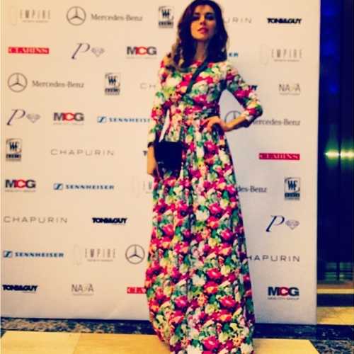 Для выхода в свет певица надела роскошное платье в пол с цветочным принтом.