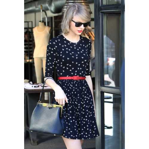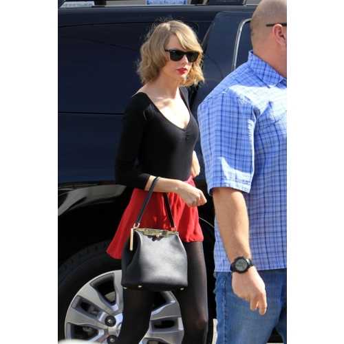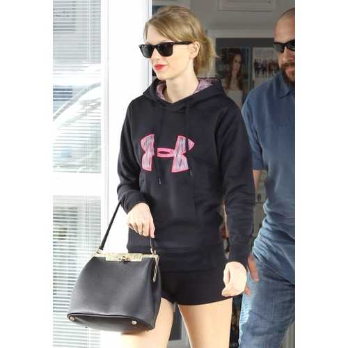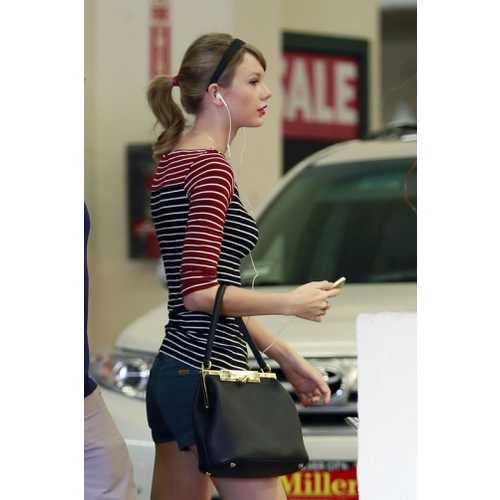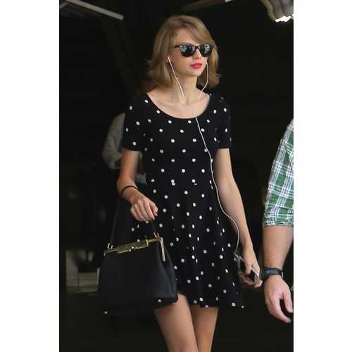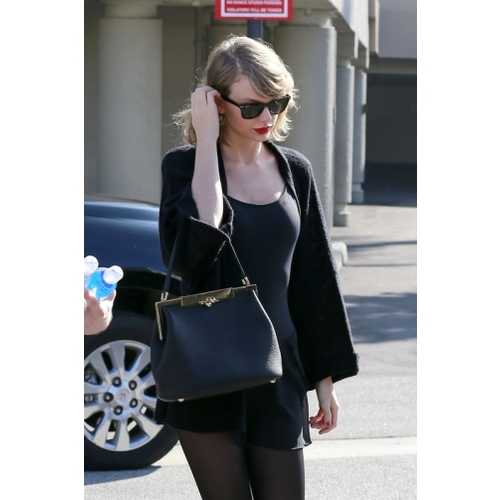 За последние несколько месяцев певица не расставалась с одной единственной вещью – маленькой черной сумкой ридикюлем. Артистка настолько прикипела к элегантному аксессуару, что носила его не только с изящными нарядами, но и с вытянутыми свитерами и спортивными шортами. Мы же хотим рассмотреть знаменитую сумочку поближе. Оказалось, что ее создали дизайнеры легендарного итальянского дуэта Dolce & Gabbana, называется она Sara Pebbled Frame Shoulder Bag и стоит ни много, ни мало $2295.00. Как думаете, всегда ли Тейлор Свифт правильно дополняла свои наряды этой сумкой?
