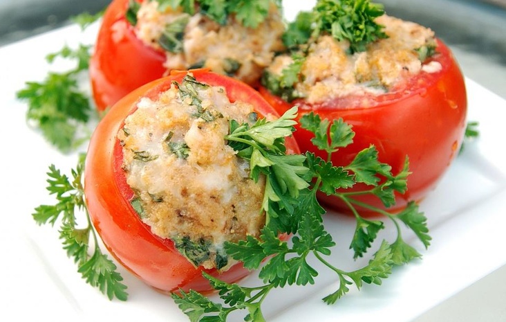 Фаршированные помидоры в духовке — яркая и вкусная закуска, которую можно готовить, как каждый день, так и к любому праздничному столу.