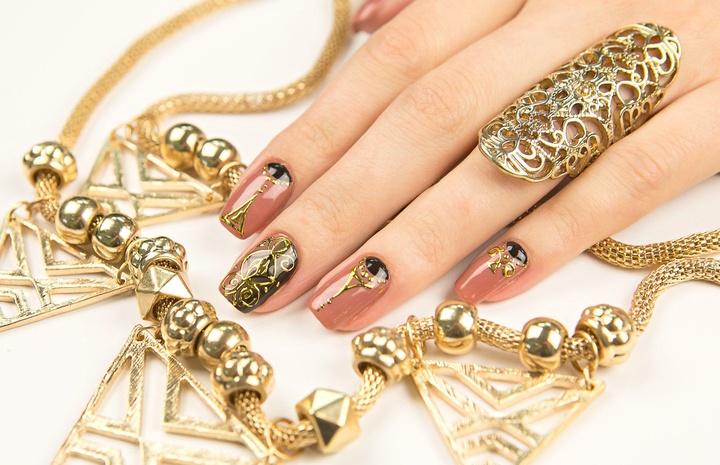 Золотой, серебряный или даже медный маникюр? Выбирать вам, все они находятся на пике популярности. Кстати, модельеры утверждают, что можно сочетать несколько оттенков в одном образе, получается очень ярко, подходит для ногтей любой формы и длины.