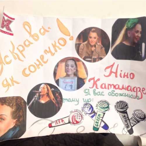 - Поклонники Нино Катамадзе подарили ей плакат с ее фотографиями и нарисовали портрет.
